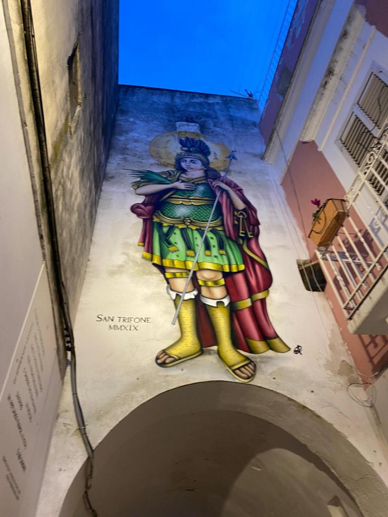 Sabato 15 marzo, con il resto del gruppo CONPASSO siamo andati ad Adelfia, dove ho avuto modo di visitare una città molto bella, che non sapevo fosse così vicina. Abbiamo visitato la Chiesa di Santa Maria del Principio e la Chiesa Madre di San Nicola. Mi ha colpito particolarmente la stuatua di San Trifone, il santo protettore della città. È rappresentato anche su un grande murales, che occupa l’intera facciata di un palazzo.