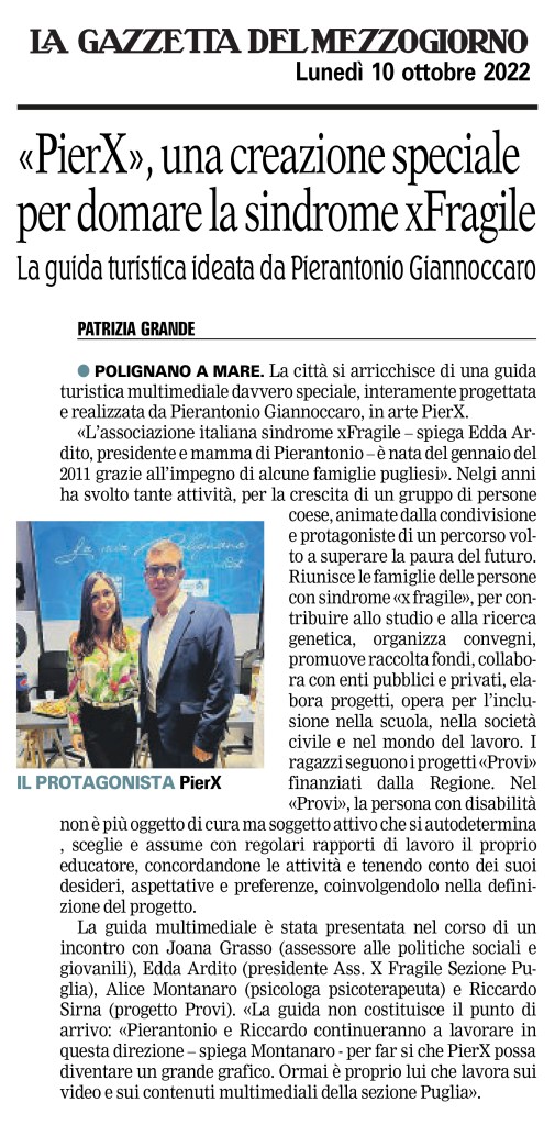 Di questo progetto ha parlato di me anche il quotidiano “La Gazzetta del Mezzogiorno” nell’articolo che vedete qui sotto.