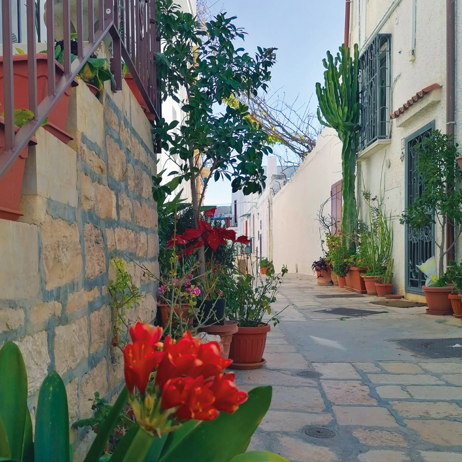 Superato l’Arco Marchesale all’ingresso del centro storico, si possono trovare tante case con fiori e piante che rendono le strade belle, profumate e colorate. Gli abitanti del paese si prendono cura di queste antiche vie ricche di storia e tradizione.